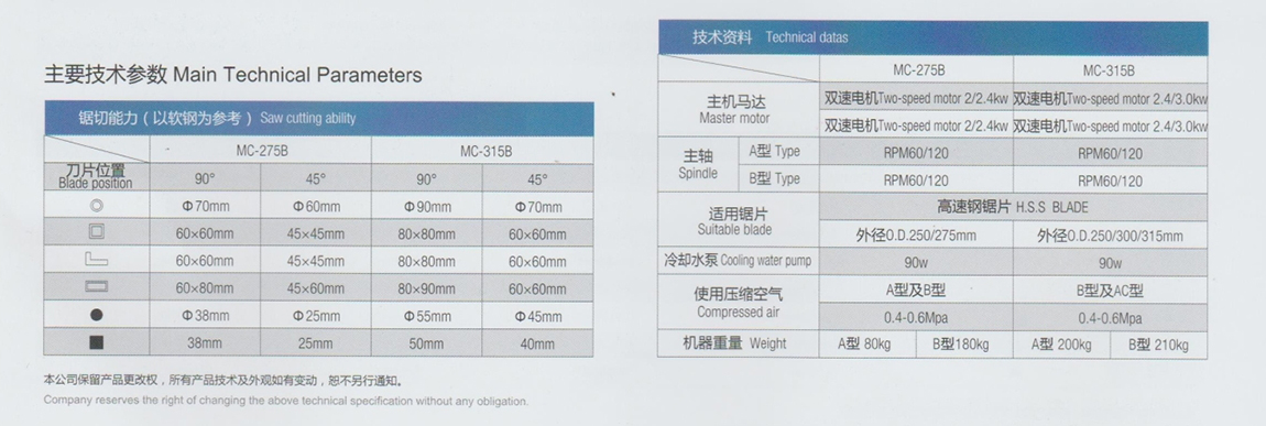 機械特點: 1 垂直滑道進刀式,進刀穩(wěn)定刀具壽命長。 2 特殊設計,多組齒輪傳動適合重型切削,精度穩(wěn)定。 3 機臺結構堅固,振動小,機器壽命長。 4 冷卻液自動循環(huán)確保工件切面平滑。 5 切屑集中處理,維護簡單容易。